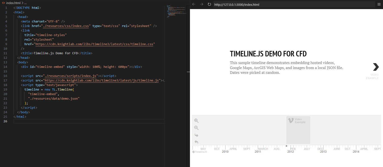 Esri Professional Services is a client-facing division, and this was one of the few engagements where I was able to see the process emerge. A city government approached us in creating a timeline webapp for the city, using Timeline JS. Our initial deliverable was sending a proof of concept, where we could confirm we could develop a timeline embedding images, videos, as well as Google and ArcGIS Online maps.