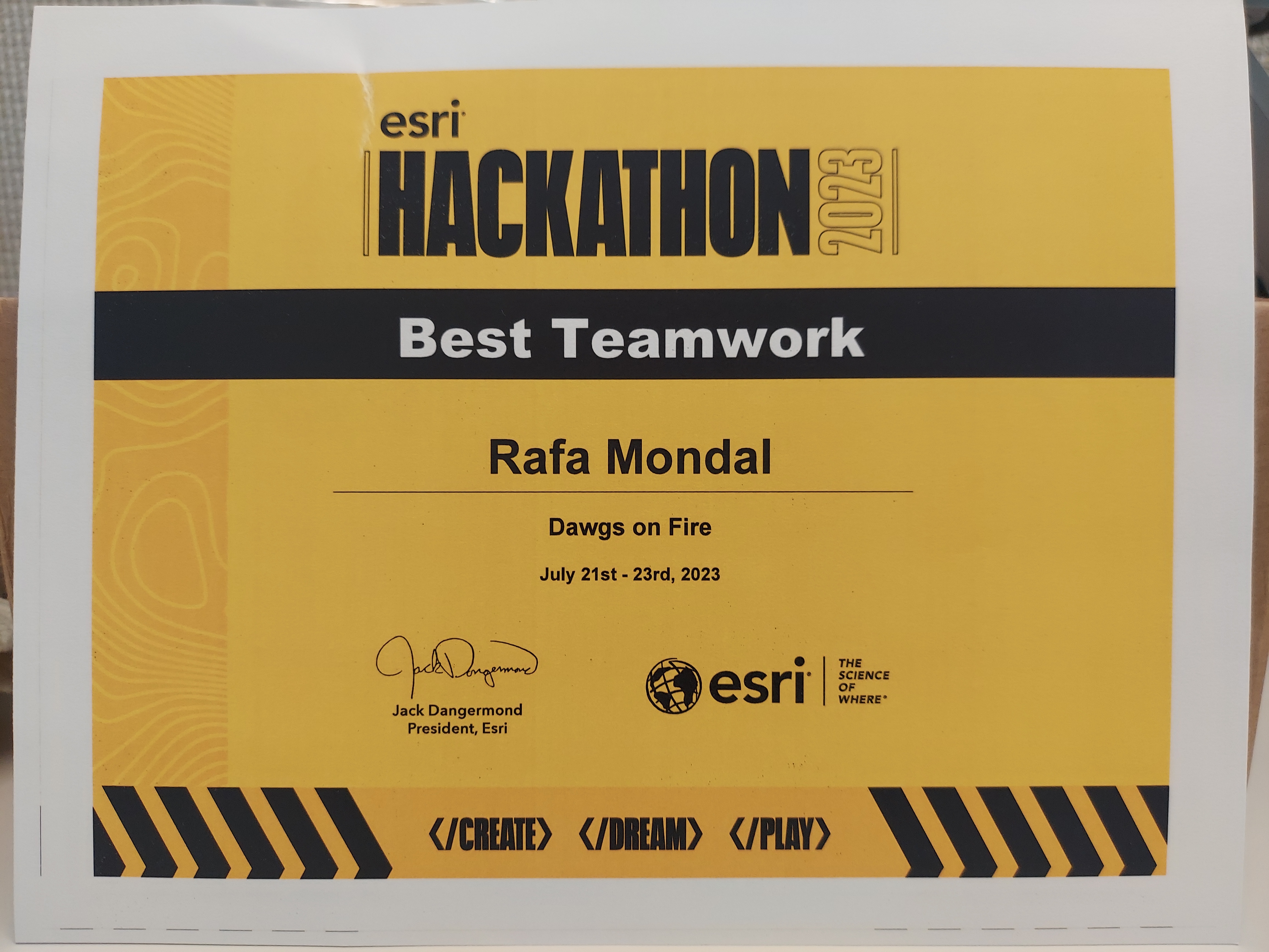 Our team, Dawgs on Fire, won the “Best Teamwork” award!